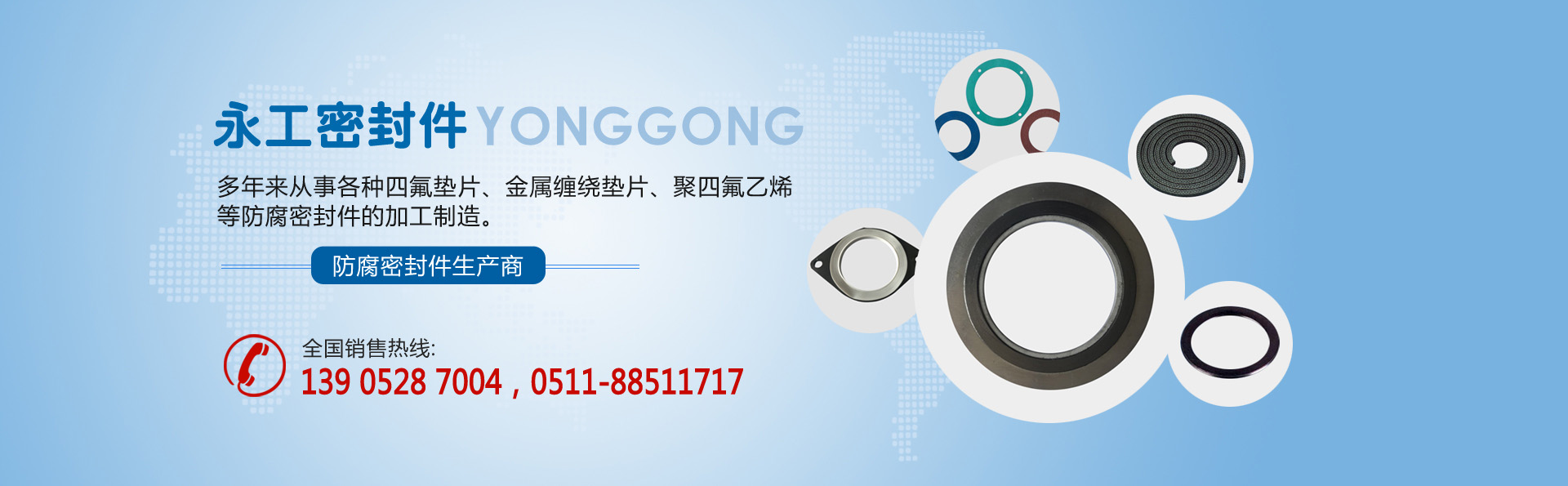 江蘇省揚中市永工密封件有限公司,位于美麗富饒的長江三角洲中,氣候宜人,交通方便,是一家專業生產四氟墊片金屬纏繞墊片、聚四氟乙烯等防腐密封件的企業。